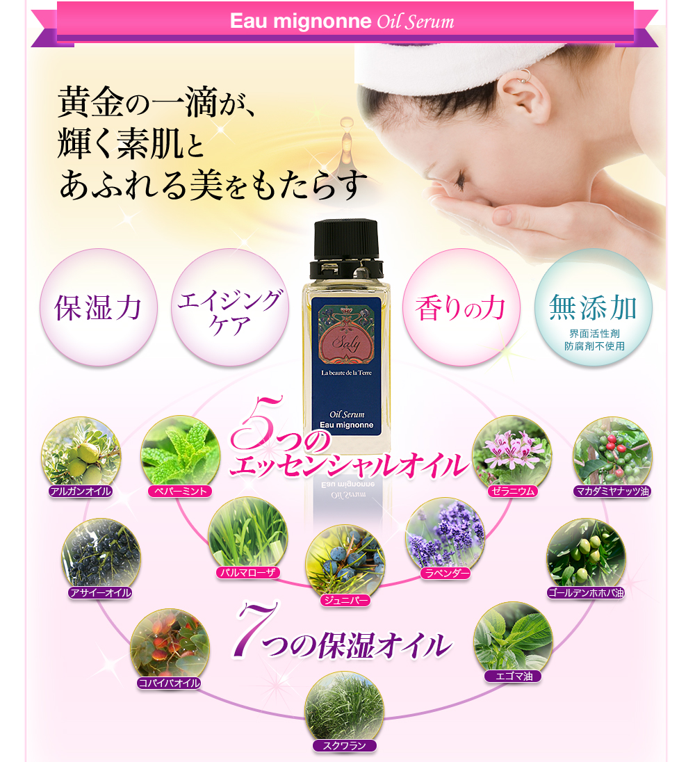 オウミニョンヌ オーガニックオイルセラムは、ビューティーデザイナー監修のもと開発された、肌本来の美しさを引き出すためのオイル美容液です。厳選されたオーガニック成分を配合し、乾燥やハリ不足といった年齢肌の悩みにアプローチします。